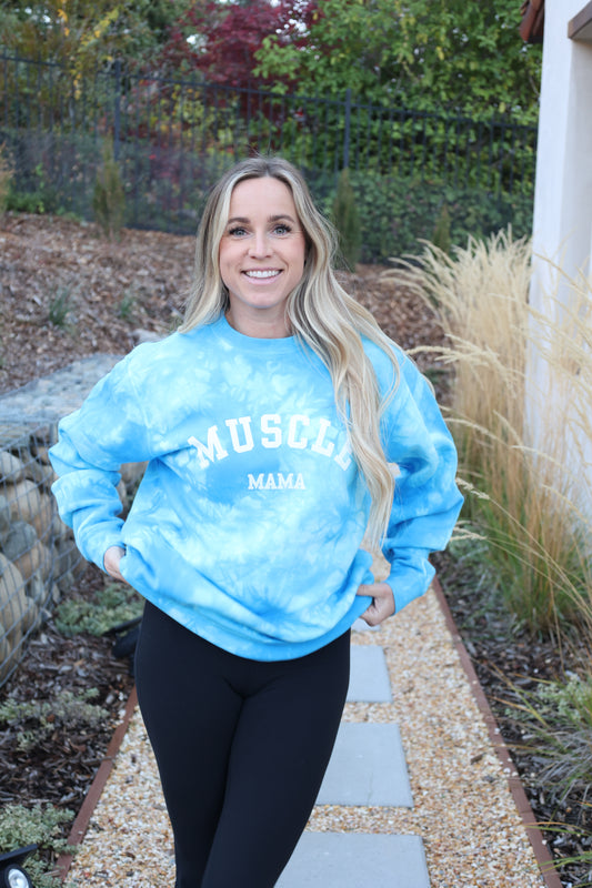 Muscle Mama Turquoise tie dye // long sleeve sweatshirt